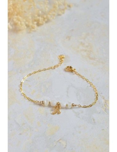 Bracelet pierre de Lune blanche + initiale Bracelet pierre de Lune blanche + initiale Bracelet pierre de Lune blanche + initiale