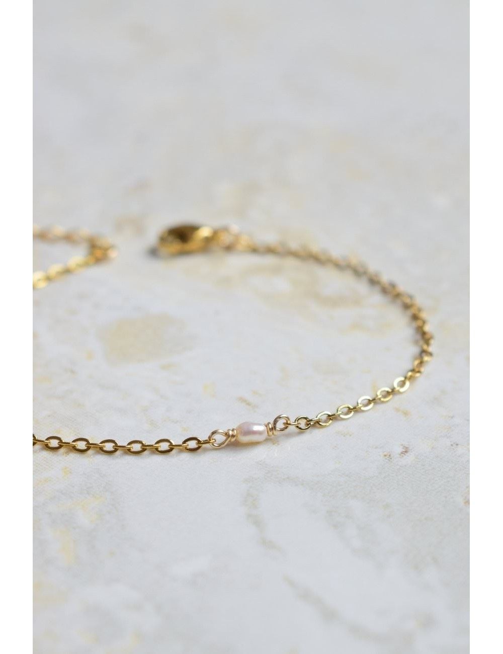 DESCRIPTION : Un adorable bracelet minimaliste travaillé sur une fine chaine et agrémenté d'une toute petite perle de culture d'eau douce irrégulière. La chaîne est en acier inoxydable  et comporte une chaîne de rallonge ainsi qu'un fermoir mousqueton facile à attacher. Le bracelet est disponible en acier inoxydable doré ou argenté.