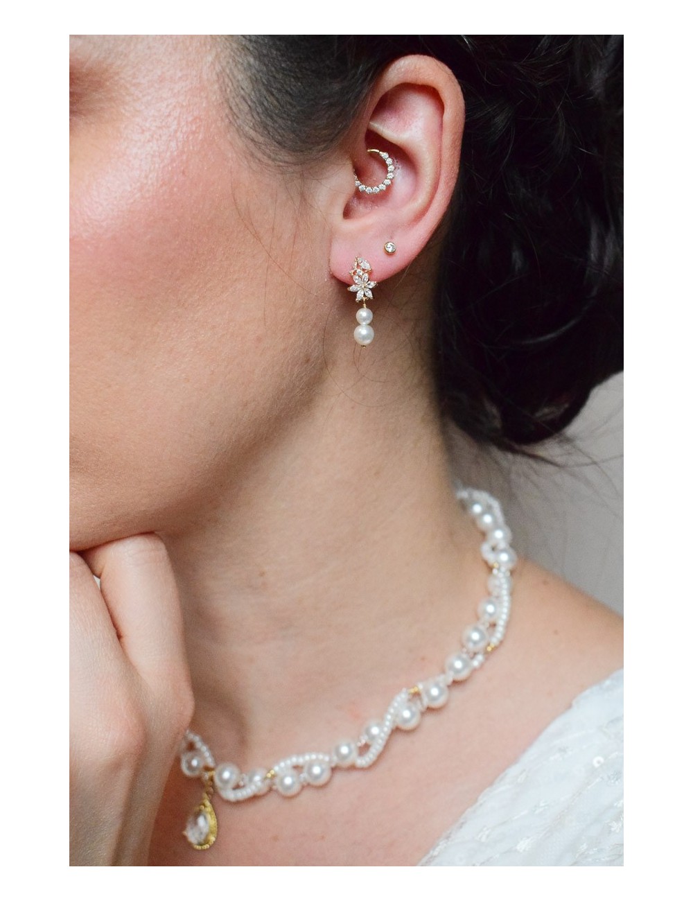 Boucles d'oreilles Mesis pour mariée délicate avec zircon et perles
