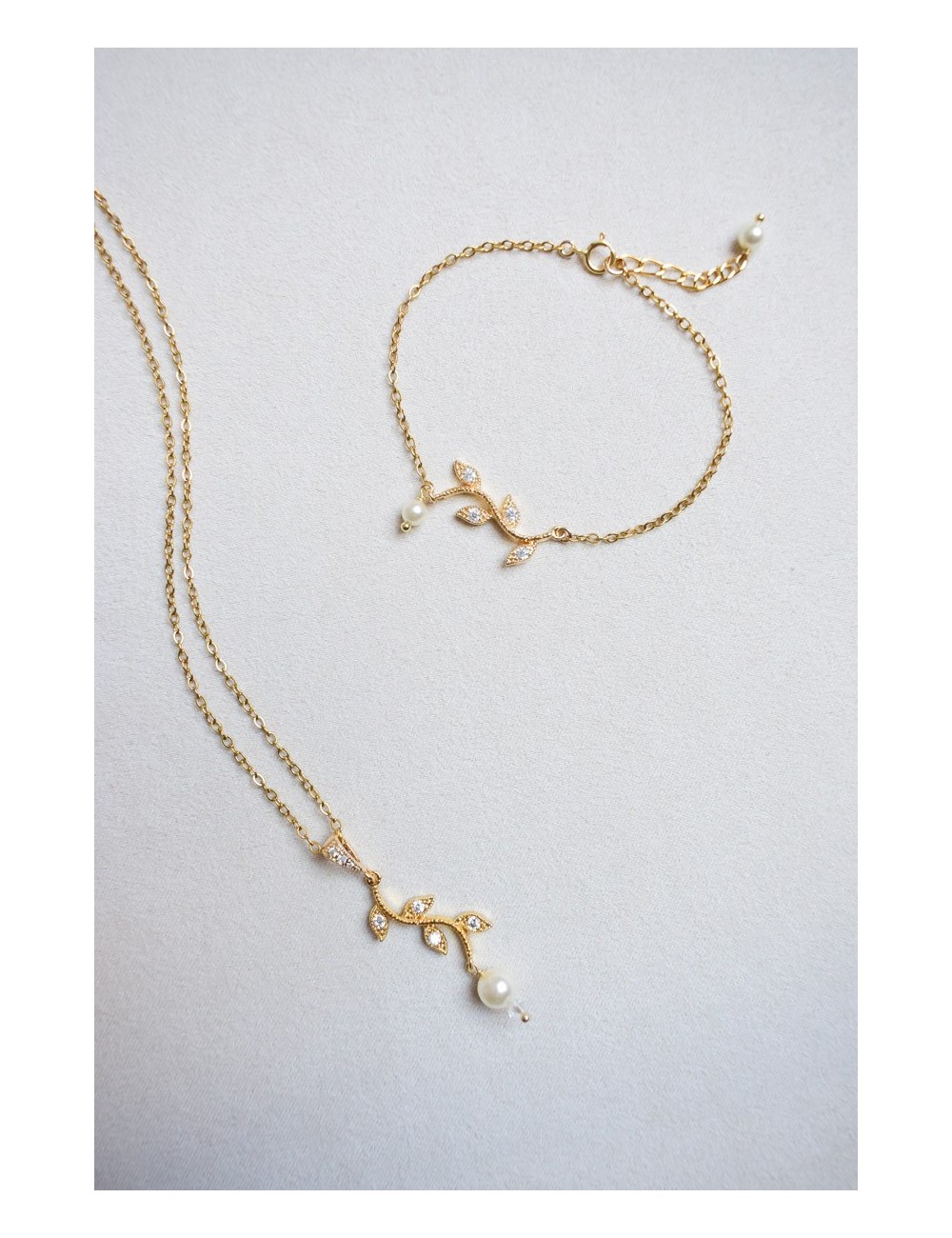 DESCRIPTION : Le bracelet de mariage Brindille est constitué de perles nacrées et d'une jolie breloque en forme de feuillage. Il est très délicat et raffiné, idéal également pour une mariée au style bohème chic, champêtre ou simplement romantique. Une touche de nature au poignet !