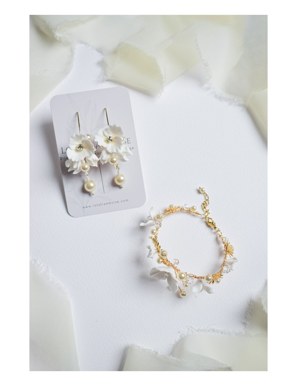 Bracelet de mariée modèle Romance avec des fleurs et des perles