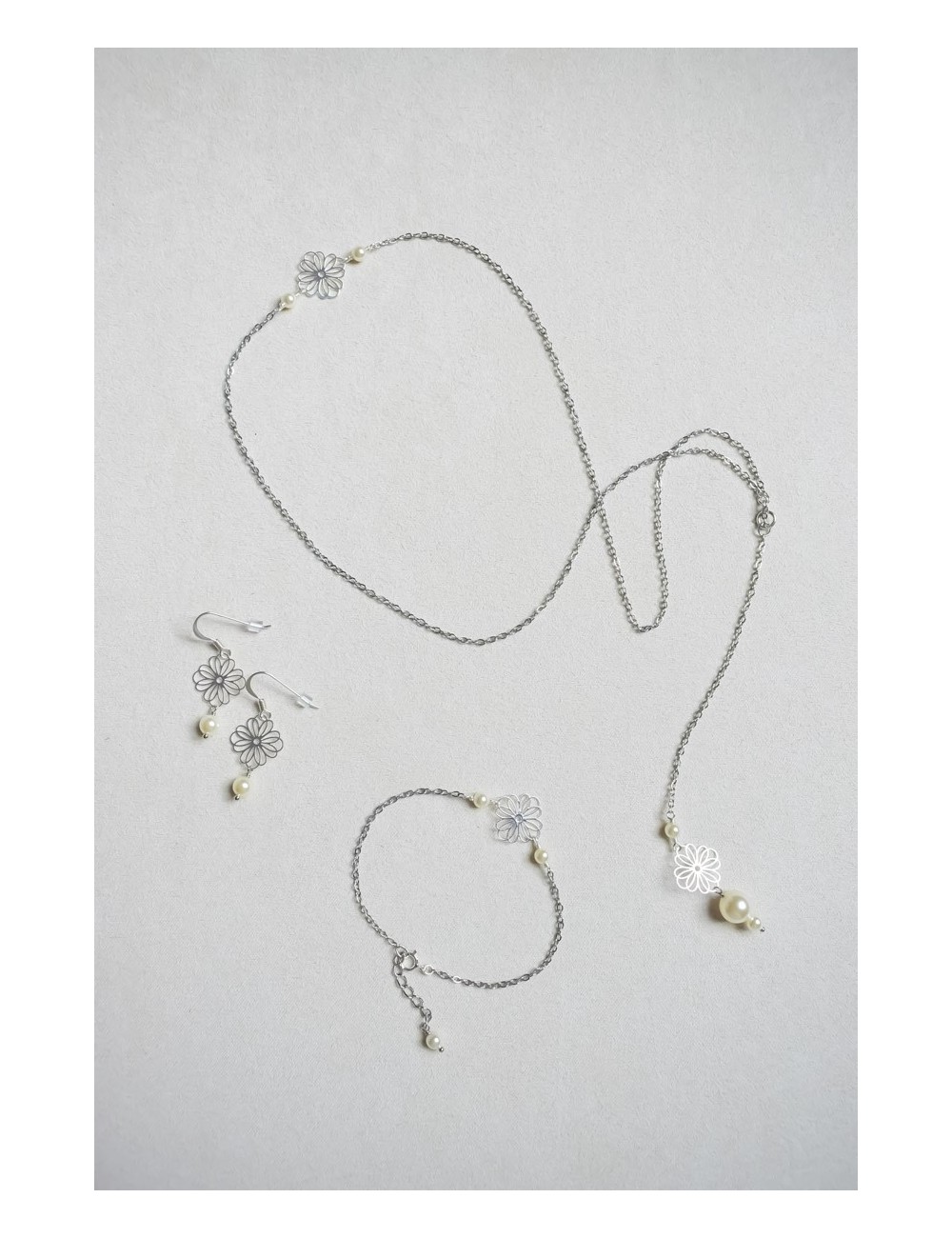 Ce modèle existe en doré, doré rose, ou argenté. Les perles existent en ivoire ou en blanc.