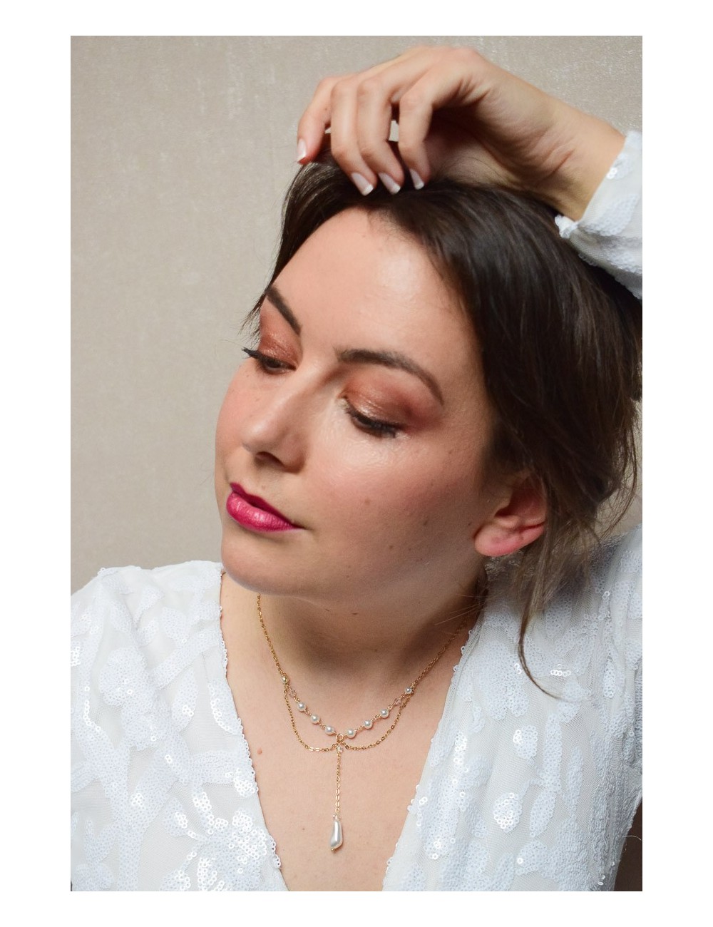• Il est plus joli de laisser au moins 4-5cm entre le début de votre robe (dans le dos) et la fin du bijou de dos.