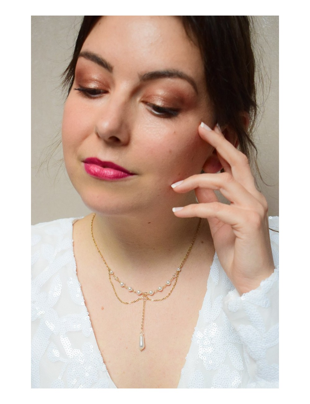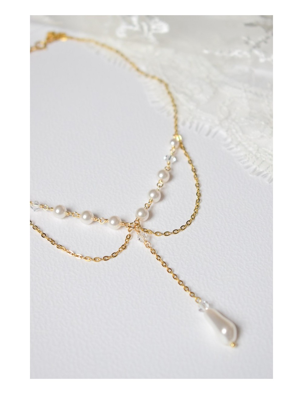 Collier de mariage Clélie avec travail de chaines