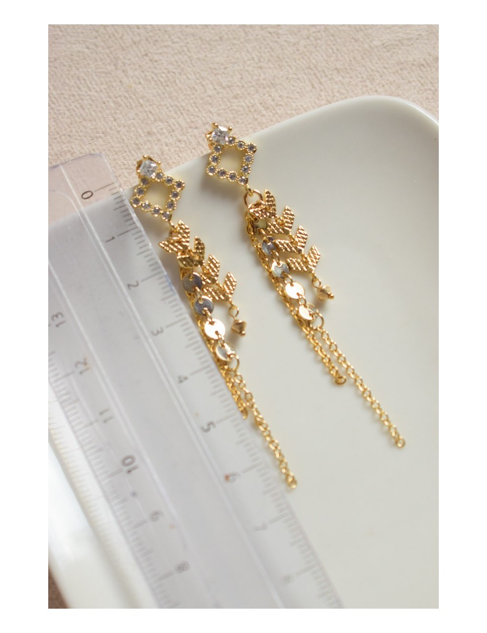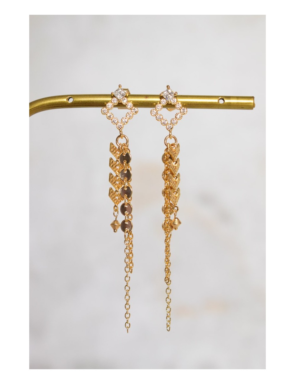 Puces en laiton plaqué or avec oxydes de zirconium. Chaines en laiton doré.
