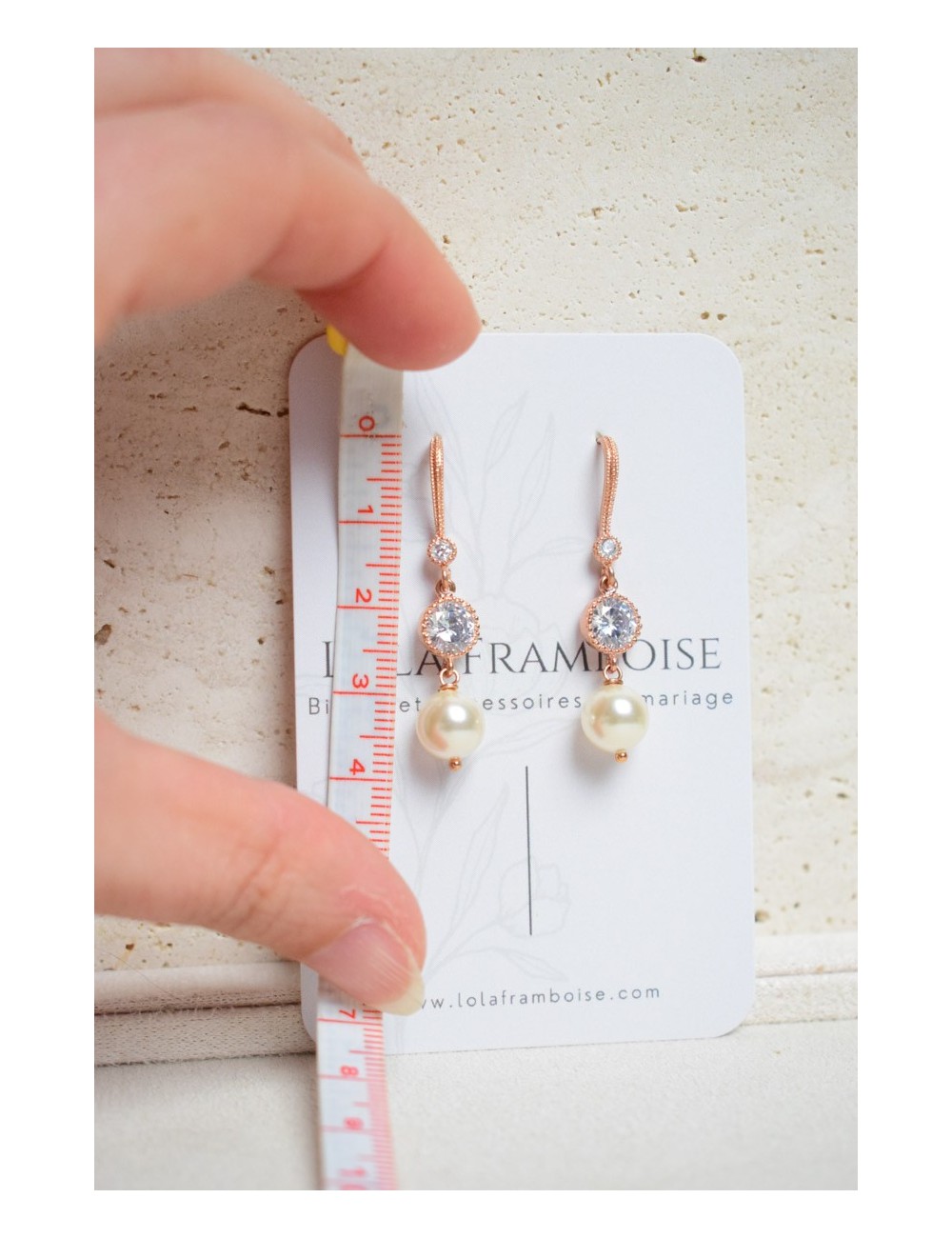 Boucles d'oreilles en oxydes de zirconium et perle, modèle Murmure