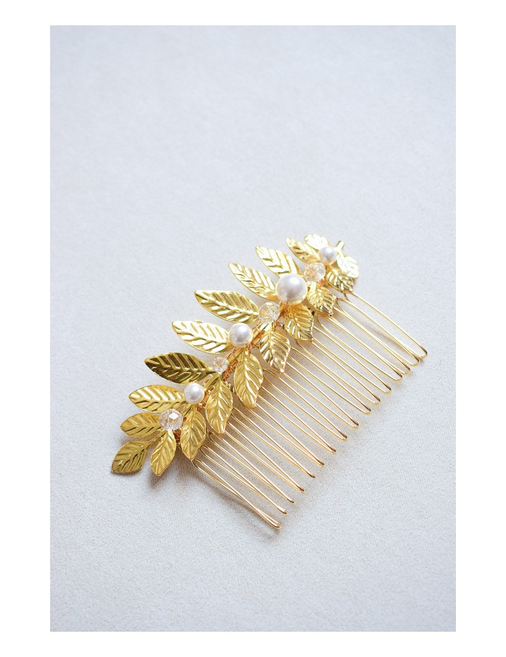 Peigne pour la mariée grande feuille dorée pour le chignon modèle Siam