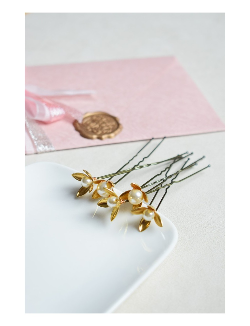5 pics à cheveux Pistil - fleurs et perles