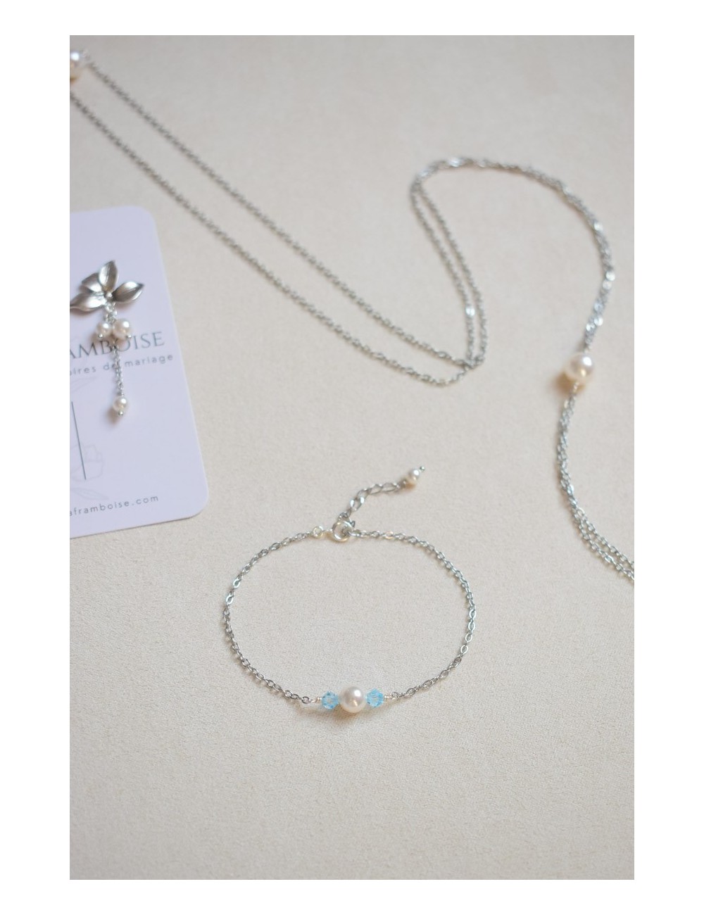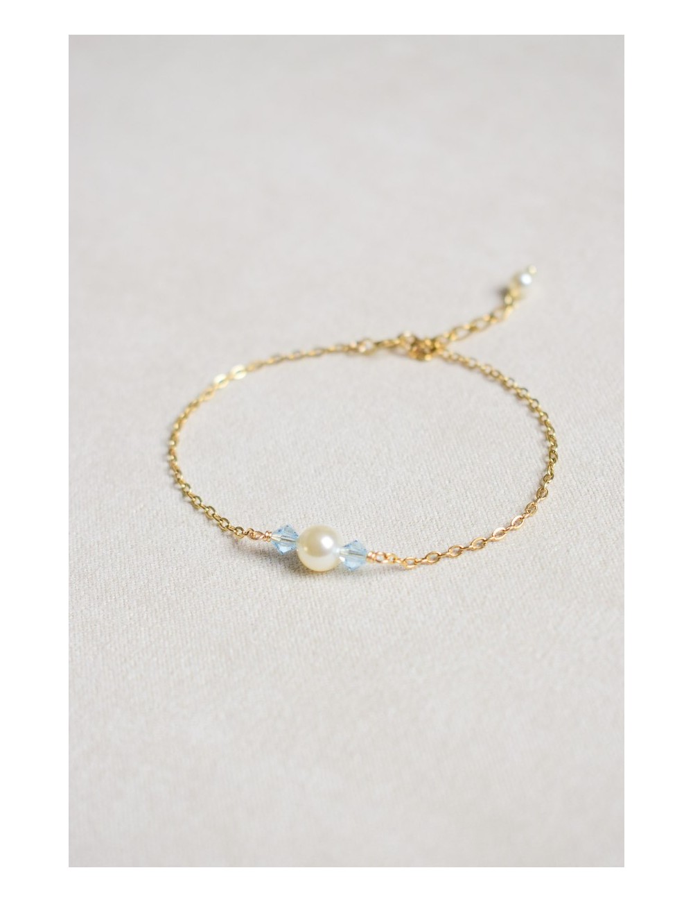 Bracelet Orphée minimaliste avec touche de bleu pour la mariée