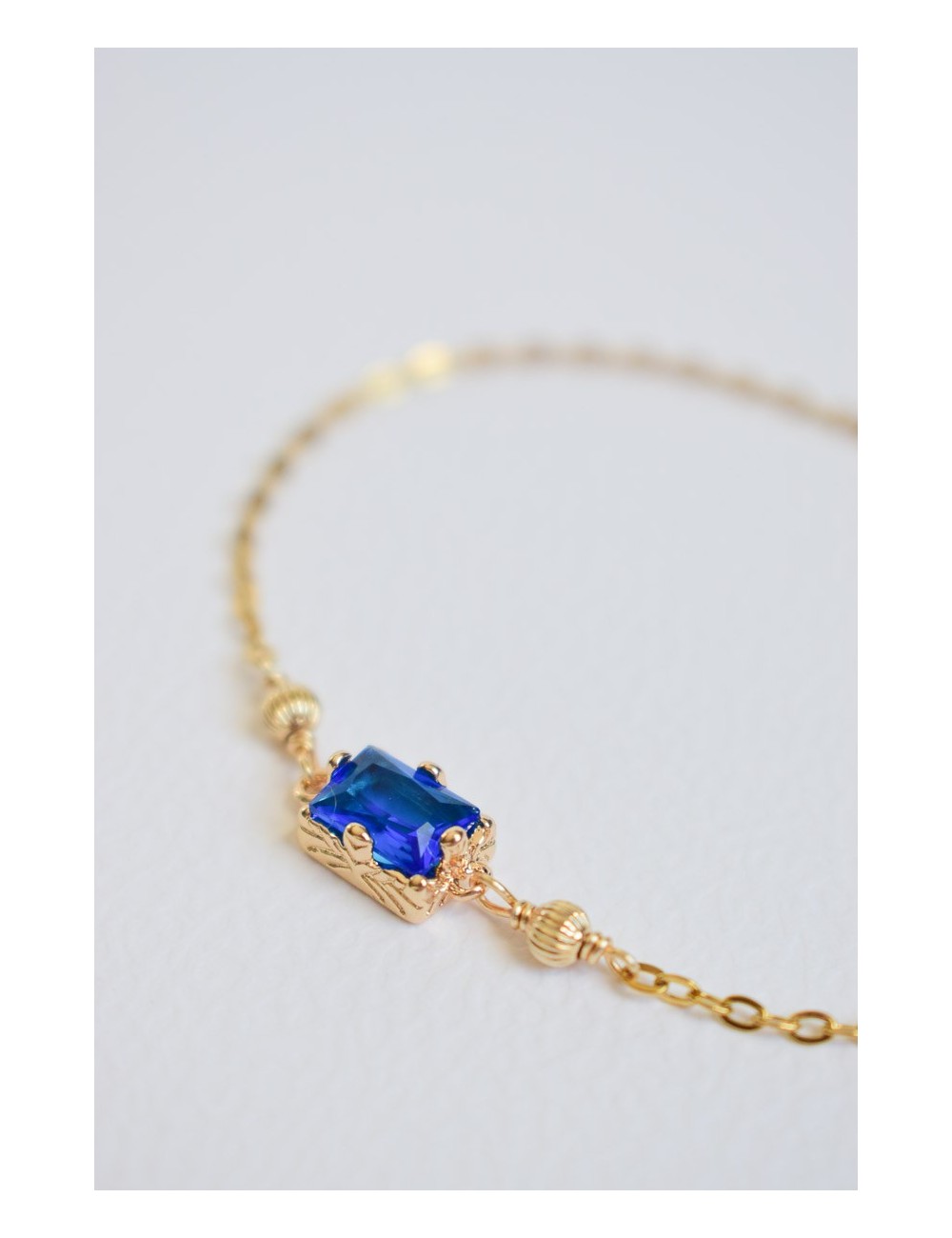 DESCRIPTION : Un bracelet avec sa touche de bleu roi, en toute simplicité, sur un cabochon central serti et doré. Cette pierre bleue est entourée de 2 perles dorées striées, et montée sur une fine chaine. Il s'agit d'une couleur bleue qui ressortira davantage sur la peau que le bleu ciel. Parfait si vous voulez qu'on le remarque davantage, ou si vous avez la peau métisse ou noire par exemple.