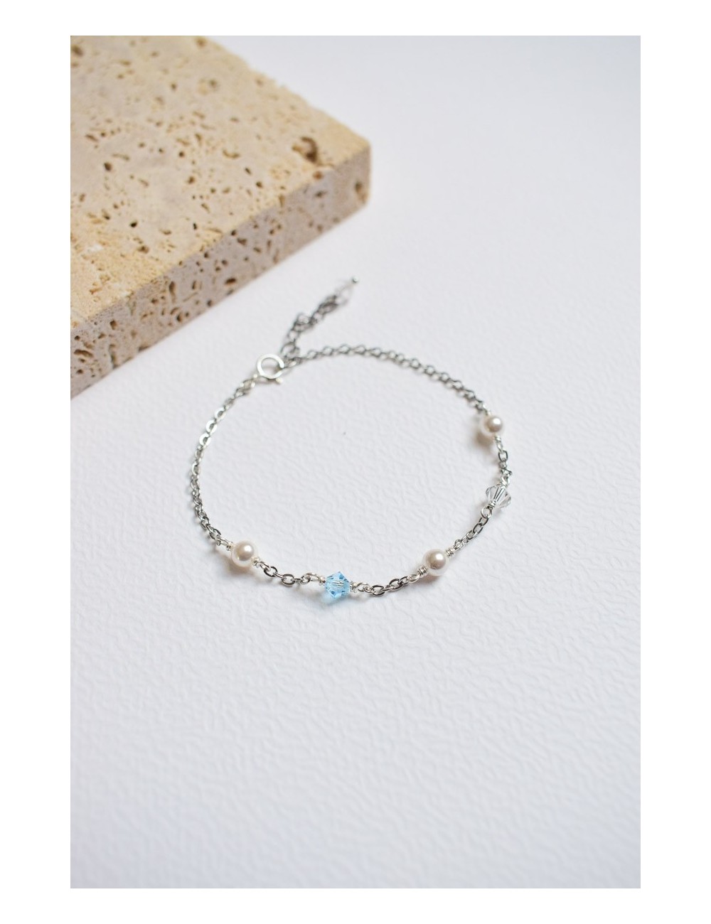 Le bracelet de mariage Pure s'associe à une grande partie des colliers de mon site car il est composé de perles simples et d'un enfilage simple également.