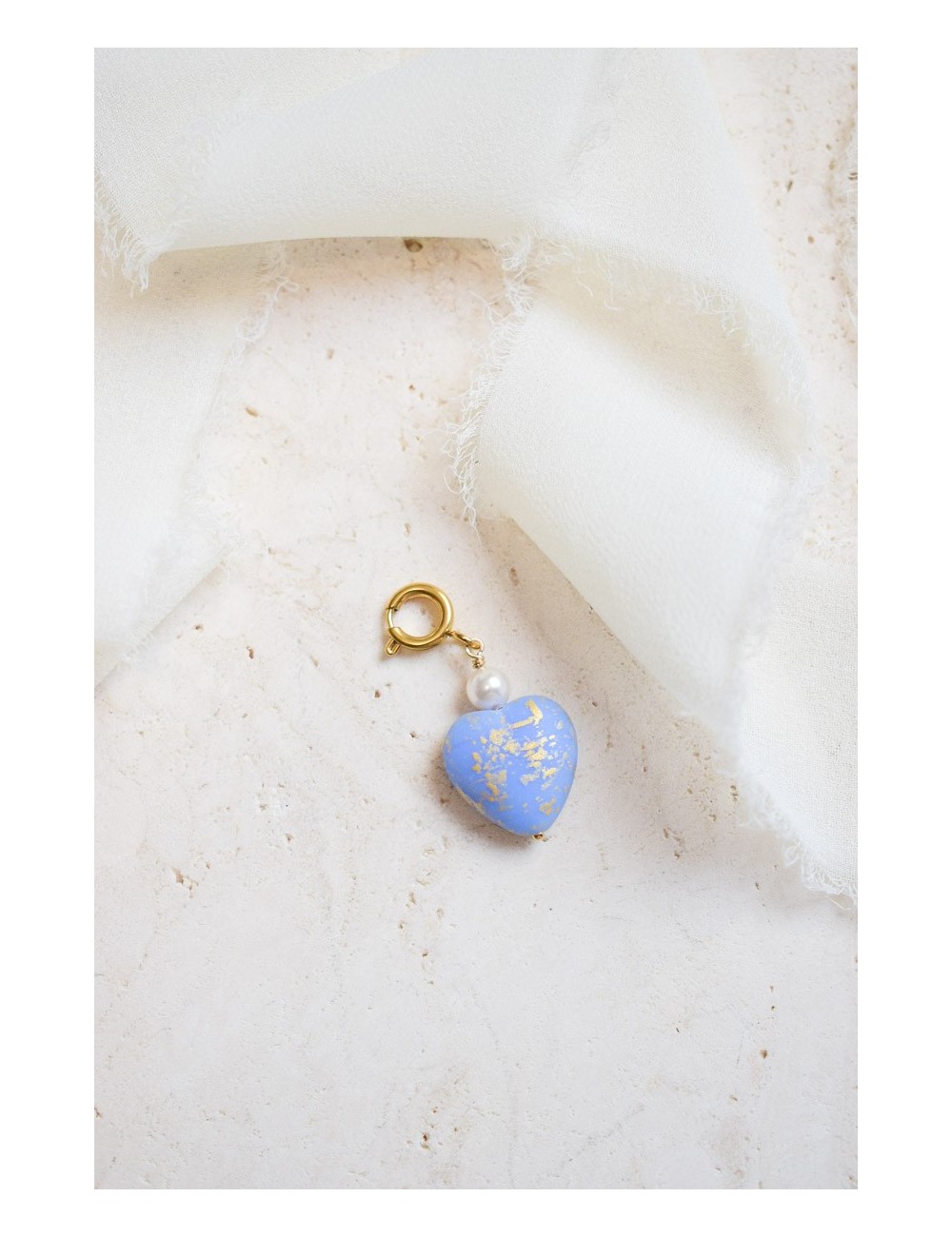DESCRIPTION : Un adorable petit coeur d'un bleu doux, marbré de doré. Il s'accroche où vous le souhaitez avec son fermoir. Cela peut être à votre chaussure, à votre jarretière, à votre lingerie ou encore au ruban de votre bouquet, mais aussi à un bijou (collier, bracelet...) pour ne citer que ces exemples.